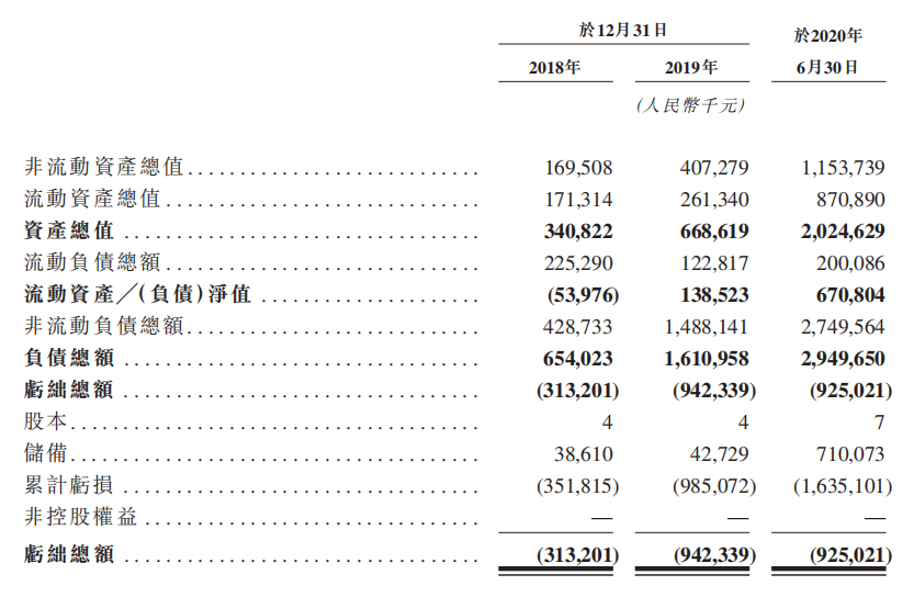 该公司负债总额由2018年12月31日的约6.54亿元大幅增至2019年12月31日的约16.11亿元,主要是由于发行予投资者的优先股大幅增加。该公司的负债总额进一步增至2020年6月30日的约29.50亿元,也主要是由于2020年6月30日发行予投资者的优先股大幅增加26.374亿元。