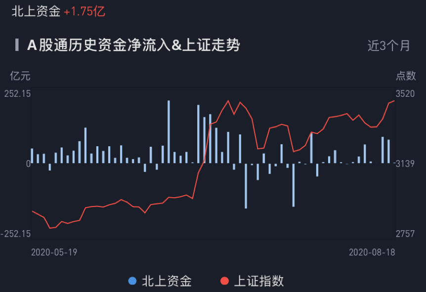 北上资金今日流入A股1.75亿元,而上一交易日大幅流入,资金流入趋缓或与行情遇冷相关。