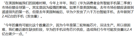 事实上就在上周,华为常务董事、华为消费者业务CEO余承东刚刚表示,华为的麒麟系列高端芯片由于美国的“制裁”即将停产,大呼“困难”。