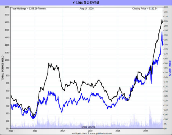 他的理由是,全球最大黄金ETF——SPDR Gold Trust ETF(GLD)和iShares Gold Trust ETF(IAU)持有的实物黄金数量,最近一段时间都大幅增加。具体而言,在过去几个月中,GLD和IAU合计增持了约400吨(1200万盎司)的实物黄金,这表明黄金ETF的投机者在积极购入黄金ETF。
