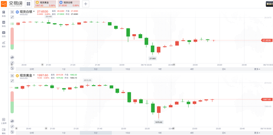 北京时间8月18日美盘时段,金银未能延续日间的涨势。现货黄金一度失守1980美元关口,较日高回落40美元;现货白银跌超1%至27.08美元/盎司。
