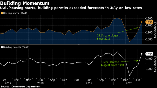 7月份美国住房开工数增长超过预期,表明建筑商正在对创历史新低的利率所刺激的强劲住房需求做出反应。