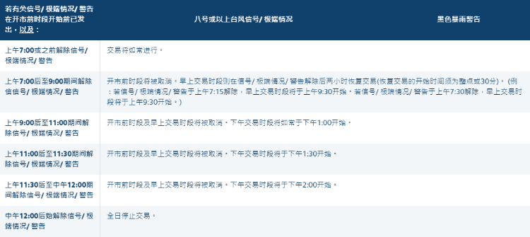 若八号或以上台风信号于中午12时仍然生效,证券及衍生产品市场将会全日暂停交易。