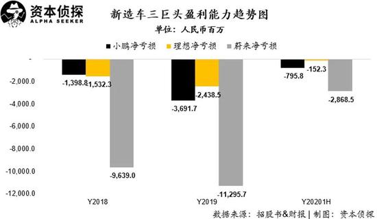根据新造车三巨头各自公布的2020年上半年财务数据显示: