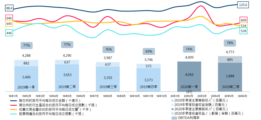 营运支出较2019年上半年上升6%,源于年度薪酬调整及2019年6月收购港融科技后雇员数目上升,以及资讯技术成本和专业费用的增加。EBITDA利润率为76%,较2019年上半年下跌1%,但较2019财政年度上升1%。