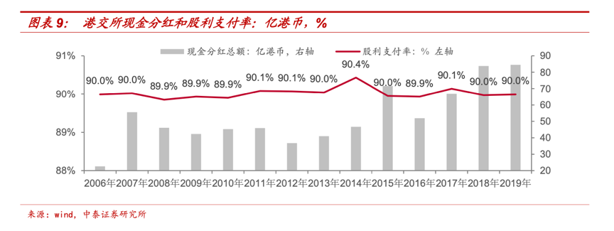 除此之外,轻资产运营也为港交所带来高分红和边际递增的利润率。