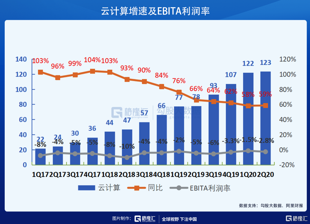 阿里云本季度营收123亿元, 同比增长59%,继续保持高速增长,调整后的EBITA利润率为-2.8%,较去年同期亏损率有所收窄,规模效应有所显现,但环比有所扩大, 仍未能实现盈利。