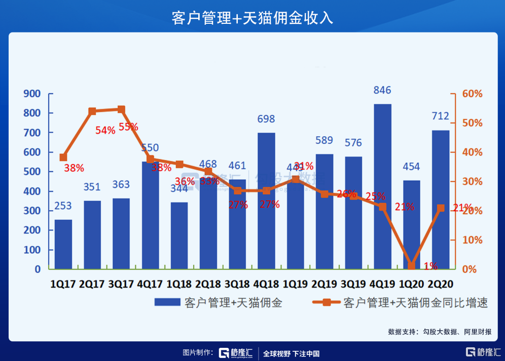 本季度淘宝天猫的广告佣金收入712亿元,同比增长21%。虽然同比增速有所放缓,但考虑到淘系电商的规模,这个增速是很不错的。