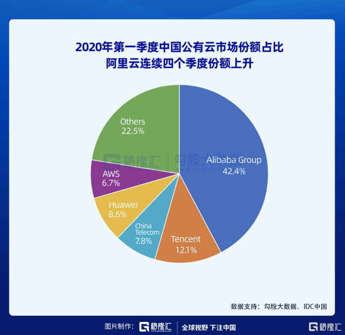 据IDC统计,阿里云在中国市场上连续四个季度实现市场份额增长,市场份额达42.4%。