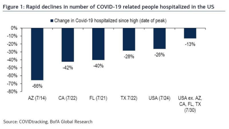 根据美国银行的统计,全美因新冠病毒导致的住院人数正以每天1%的速度下降。