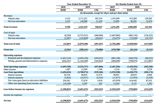 2020年上半年,小鹏汽车的净亏损为7.75亿元,远低于2019年同期的19.18亿元。