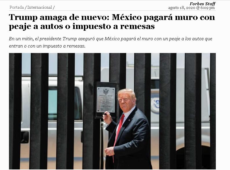 虽然截至目前,美国方面还没有公布关于收取过境费以及侨汇款税金的具体细节,特朗普在集会上表示:“不管是现在马上付钱,还是在未来的几个月内付钱,但是墨西哥一定会为边境墙买单的。”