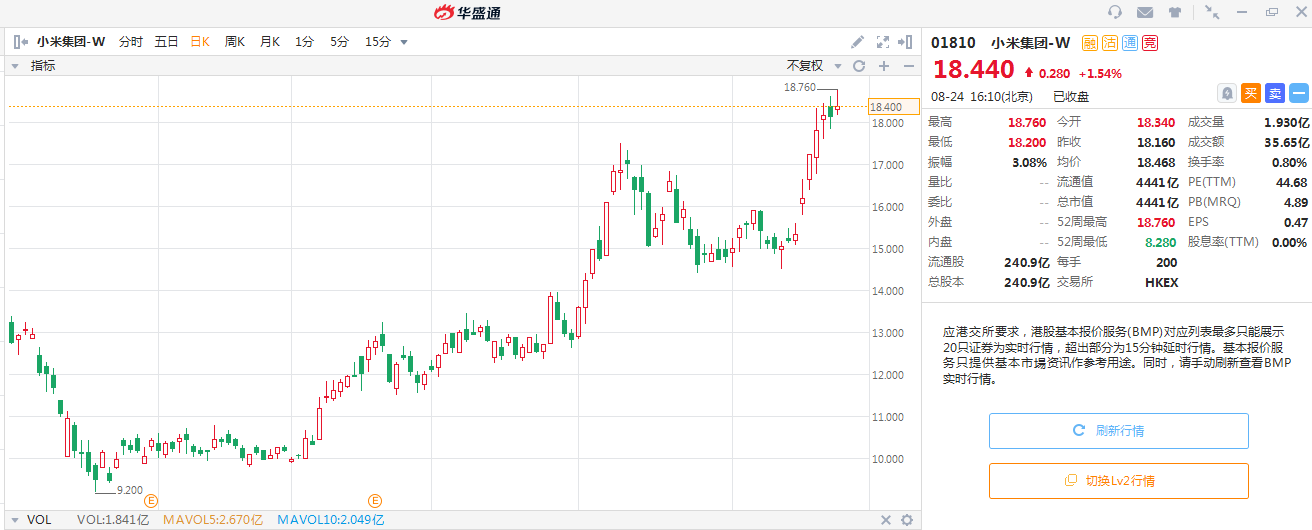 另外小米今年上半年净利润预计将介于32.27亿至45.85亿元人民币之间,较2019年同期50.78亿元人民币,同比下跌9.7%至下跌36.6%,中位数为38.8亿元人民币,同比下滑23.6%。