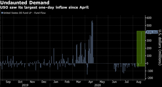 数据显示,投资者单日向USO注资4.14亿美元,令其4个月来首次录得单周净流入。