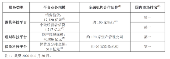 招股书指出,蚂蚁金服是中国最大的线上消费信贷和小微经营者信贷平台。截至2020年上半年底,约5亿用户及超过2000万小微经营者通过蚂蚁的微贷科技平台获得了信贷。