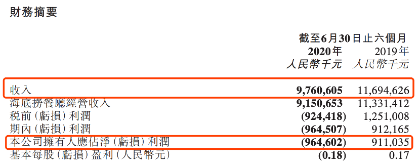 海底捞:上半年亏损近10亿港元