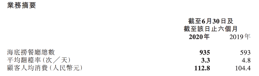 数据来源:海底捞中期业绩报告