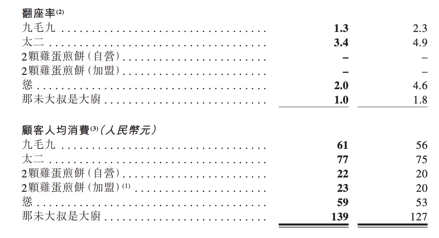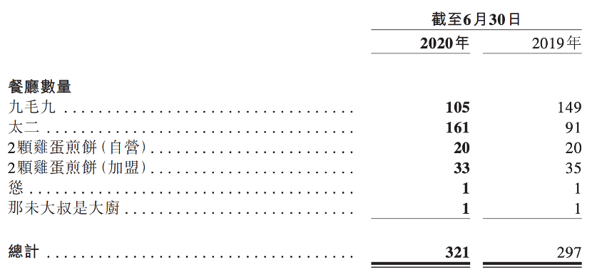 数据来源:九毛九中期业绩报告