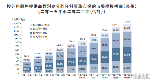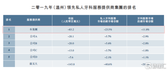 虽以“中国”冠名,但目前这家口腔公司业务仅仅局限于温州。资料显示,在温州民营及整体牙科服务市场占约23.5%及11.8%的市场份额,拥有四家位于温州的民营牙科医院并组成了牙科医院网络, 即温州市区的温州医院及鹿城医院、瑞安市的瑞安分院以及龙港市的苍南医院。