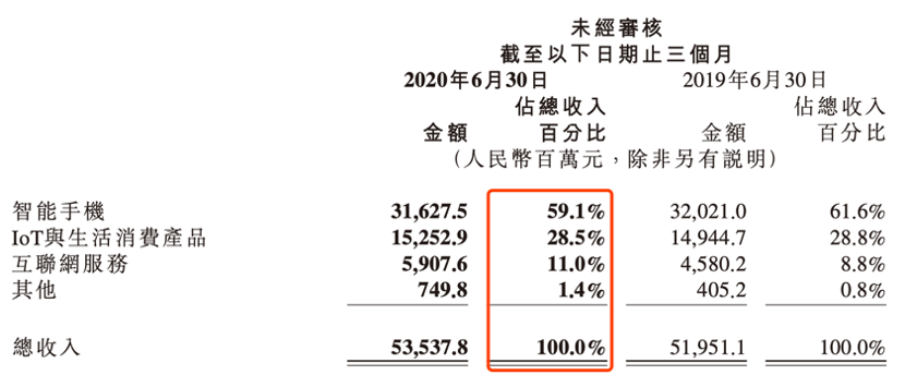 其中智能手机业务收入同比小幅下滑1% ,但环比增长4%,IoT及生活消费产品业务收入同比增长2%,环比增长17%,互联网服务业务收入同比大增29%,环比持平。