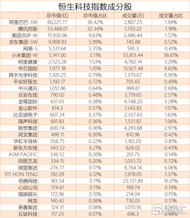 这样的成交额在最近也快成常态了,恒生科技指数30支成分股近期的平均每日合计成交额超过400亿港元,占全部港股总成交额的36%左右。