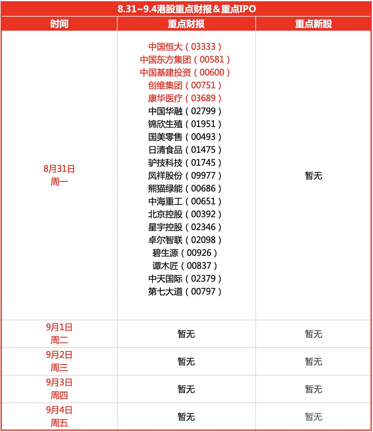 下周财报预计集中在周一公布,最重磅财报为中国房地产巨头中国恒大。