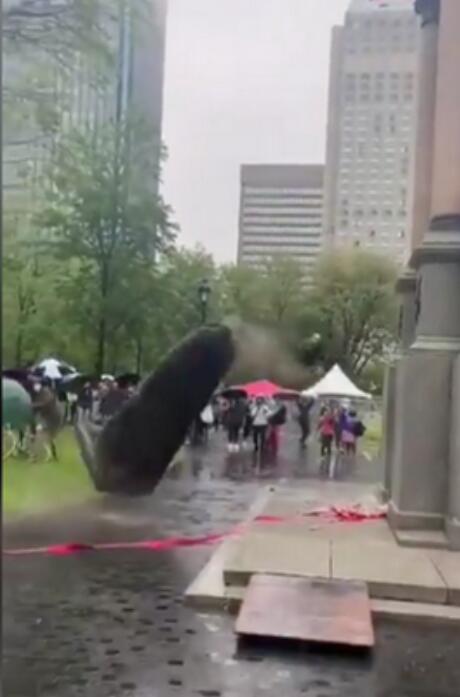 【环球网报道 记者 崔妍】当地时间29日,加拿大蒙特利尔爆发抗议活动:示威者“推倒”了位于市中心广场的加首位总理约翰·亚历山大·麦克唐纳的雕像。现场视频显示,因雕像落地时遭到猛烈撞击,其头部当场断裂,犹如被“斩首”……