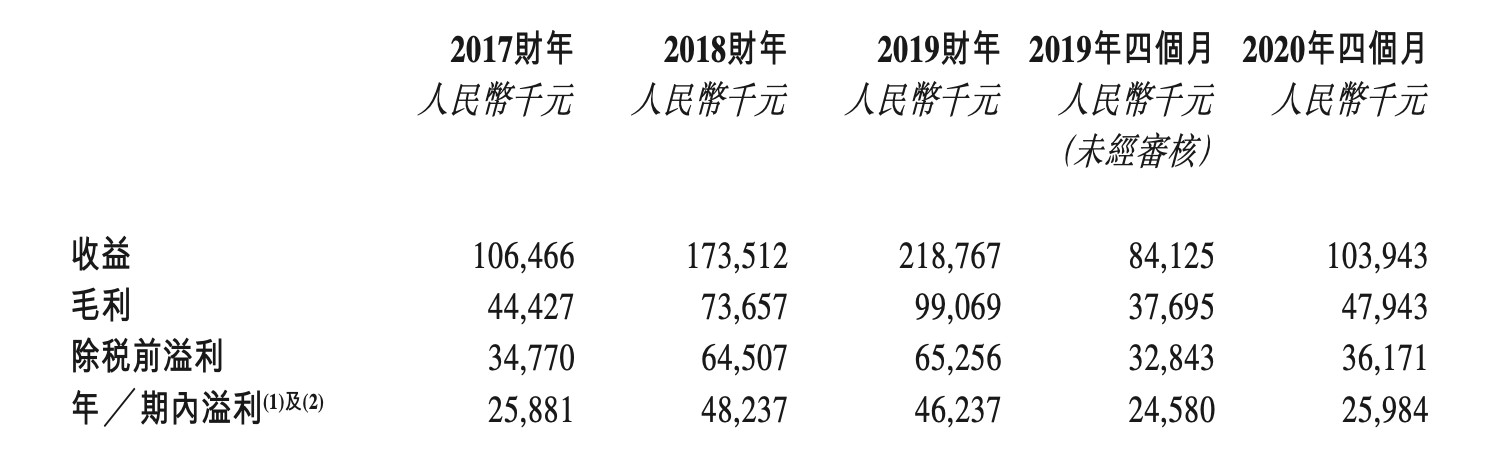 招股书显示,该公司2019财年的收益较2018财年增加约26.1%,而2020年四个月的收益较去年同期增长约23.6%。