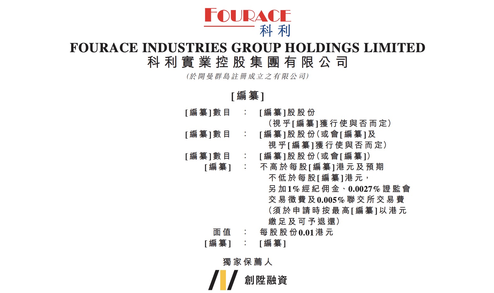 科利实业控股(01455)于2020年8月31日至2020年9月3日招股,该公司拟发行3.125亿股股份,其中香港发售3125万股,国际配售2.8125亿股,另有15%超额配股权。每股发售价为0.40港元至0.60港元,每手交易5000股,入场费为3030.23港元,预期股份将于2020年9月15日上市。