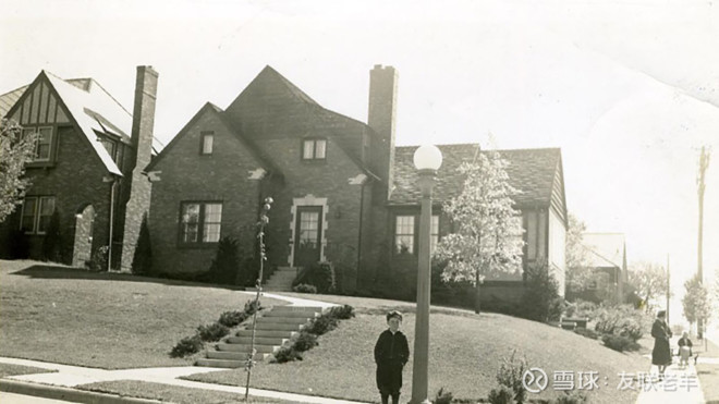 下面这张是,童年时代的巴菲特,站在奥马哈自己家门口。