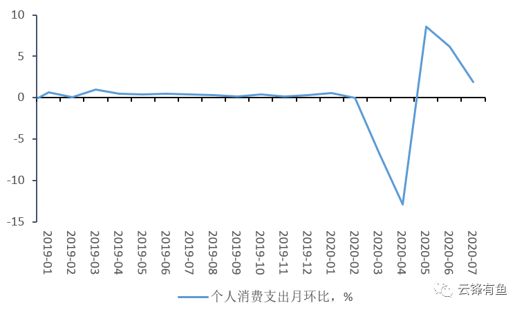 收入水平虽然逐步恢复,但消费的反弹却已经开始放缓。商务部报告显示7月个人消费开支环比上涨1.9%。与5月和6月的强势反弹相比,消费的复苏步伐明显已经放慢。消费支出约占美国GDP的70%,消费增长乏力将影响美国经济的复苏进程。
