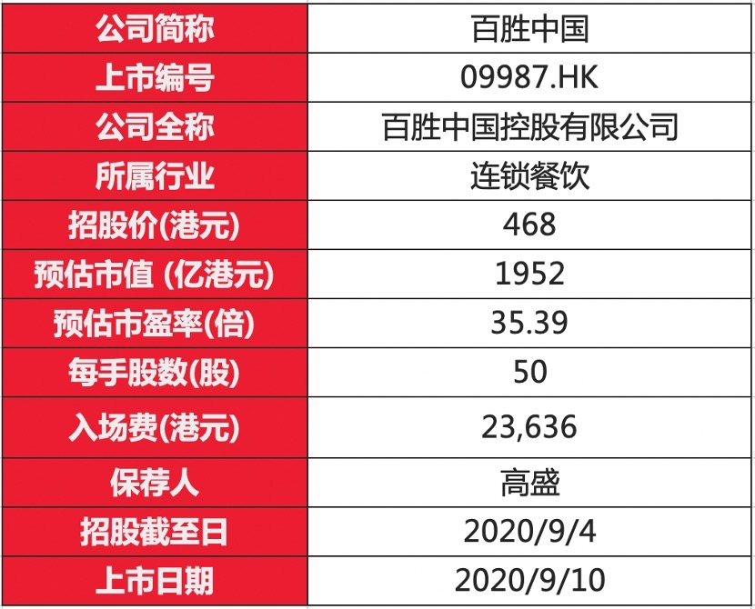 公开发售价将不超过每股468.00港元,每手50股股份,入场费为23635.80港元,预期将于2020年9月10日上午九时挂牌上市。