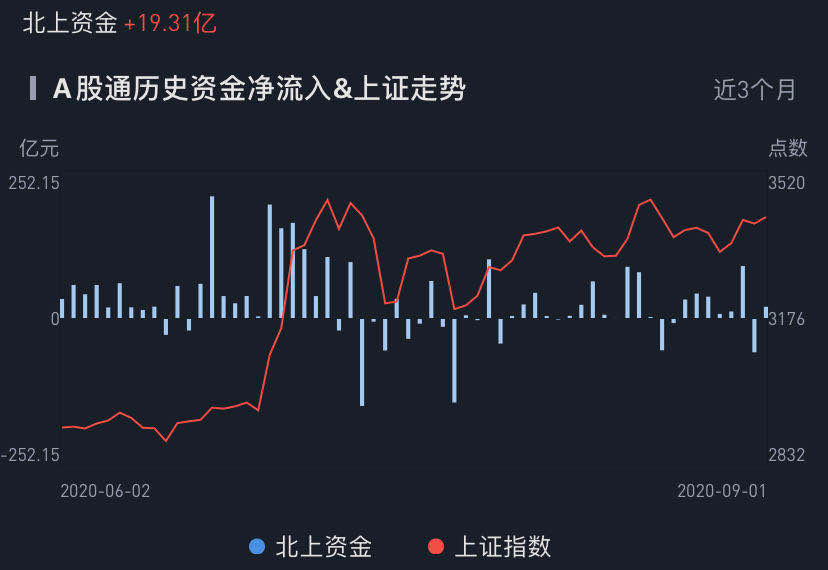 北上资金今日净流入A股19.31亿元,由大幅流出转为小幅流入。