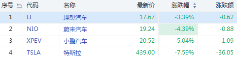 华盛资讯9月2日讯,新能源汽车美股集体受挫,截至发稿理想汽车跌3.39%,蔚来跌4.39%,小鹏汽车跌5.04%,特斯拉跌7.59%。
