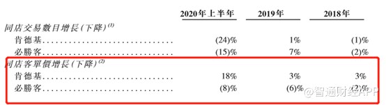 新开店数量下滑也罢,必胜客同店客单价也不断下滑。招股书显示,必胜客的同店客单价2018年下滑2%,2019年持续下滑,且下滑幅度达到6%。而反观肯德基,近几年同店客单价不断上升,受公共卫生事件影响,肯德基同店客单价甚至提高18%,而必胜客则下降8%。
