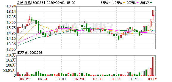 9月1日晚间,圆通速递发布公告称,已与阿里巴巴达成新一轮战略合作。公司控股股东及实际控制人已向阿里巴巴转让部分股权。本次转让的股份占公司股份总数的12%,转让价格为17.406元/股,转让价格总计约合66亿元。