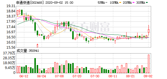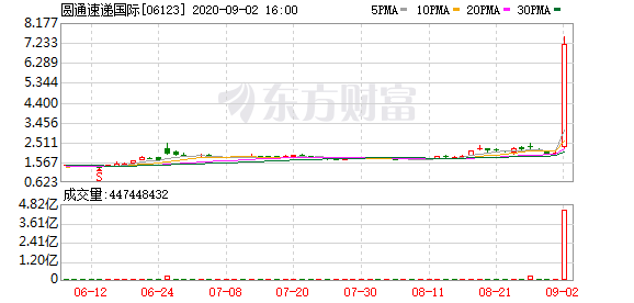 9月2日,物流板块涨势显著。A股收盘时,圆通速递(600233-CN)大涨10% 报18.37元/股,申通快递(002468-CN)上涨3.43%报17.2元/股,韵达股份(002120-CN)上涨1.97%报21.24元/股。另外,截至港股收盘,圆通速递国际(06123-HK)涨幅更是高达259.3%,报7.15港元/股,成交额达23.13亿港元,总市值为29.8亿港元。