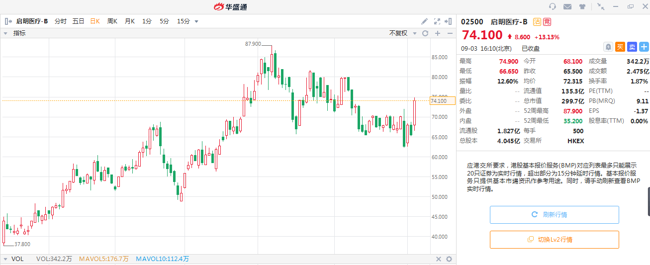 9月3日,恒生指数呈现全天震荡下行的走势,收市下跌0.45%。而拉开港股主板却有一家公司实现了单日超13%的涨幅,这家公司就是启明医疗-B。启明医疗-B成立于2009年,是一家截至2020上半年仍然亏损的医疗器械公司。那么究竟是什么消息催化了启明医疗的大涨呢?