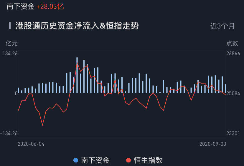 南下资金今日净流入港股28.03亿港元,流入规模较上一交易日有所下滑,但趋势上仍有位维持。