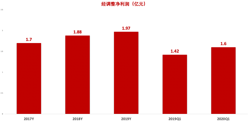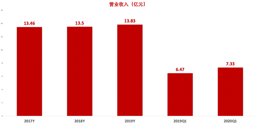 2017-2019年,朝云集团的营业收入分别为13.46、13.5、13.83亿元,几乎没有增长。如果考虑到其间的通胀,朝云的营收实际上是下滑的,对于必选消费而言是非常大的隐患。不过,2020Q1公司的营收同比增长达到13.29%,后续是否能继续增长,值得长期观察。