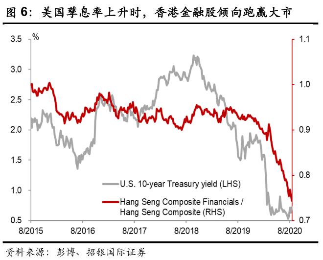 其中,美联储修改通胀目标,意味未来几年将维持利率不变,将容许联邦基金利率更长时间保持于近零。而这将令美元继续走弱,人民币走强。也会令孳息曲线变得较倾斜,有利股价向上,尤其利好金融股。同时,人民币走强,有利整体中国股票,尤其是持有大量人民币资产的金融及地产股。