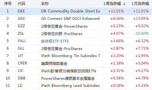 上周公布的超预期非农数据推动了美元的回升,从而令金价承压。黄金期货价格上周下跌2.1%,白银下跌3.3%,推动做空白银黄金的ETF纷纷上涨。