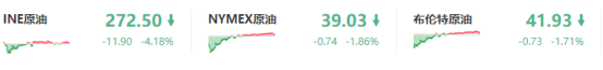 受消息影响,国际原油纷纷跳水,INE原有油指数大跌4.18%,WTI也跌了近2%。