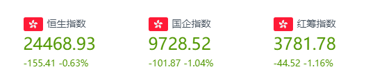 9月9日,市场情绪整体依旧低迷,港股主要指数均收跌。截止收盘,恒指跌0.63%,报24468点,国指跌1.04%,报9728点,恒生科技指数跌1.51%,报7015点。