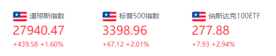 美股周三收高,部分挽回了周二的跌幅。科技板块录得4月以来最好单日表现。市场等待美国国会就新一轮刺激法案进行投票。道指涨439.58点,或1.60%,报27940.47点;纳指涨293.87点,或2.71%,报11141.56点;标普500指数涨67.12点,或2.01%,报3398.96点。