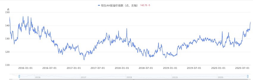 A-H溢价指数创4年新高。来源:通联数据