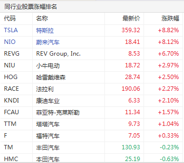 其他新能源汽车股中,特斯拉反弹大涨近9%,小鹏汽车涨近3%,理想汽车涨近4%,小牛电动涨近3%。