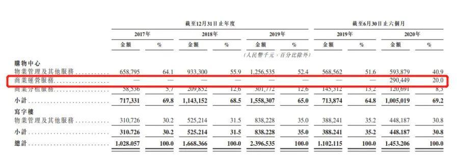 而随着今年1月份正式把“商业运营服务”纳入到商业运营及物业管理服务这一业务板块上,两者之间的收入差距就更小了。