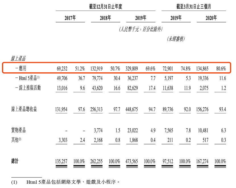 从往期记录来看,乐享互动的产品组合以线上产品为主,其次为实物产品。公司的线上产品主要包括应用、Html 5产品(如网络文学、游戏及小程序)以及线上推广活动。 于2017年,公司亦提供游戏共同发行服务予游戏提供商。