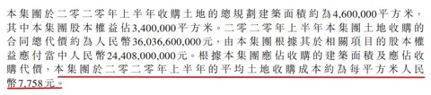 另一个值得观察的指标则是公司上半年土地收购成本,这一数据也在大幅增加——每平方米土地收购成本爆增43%,涨至7758元。